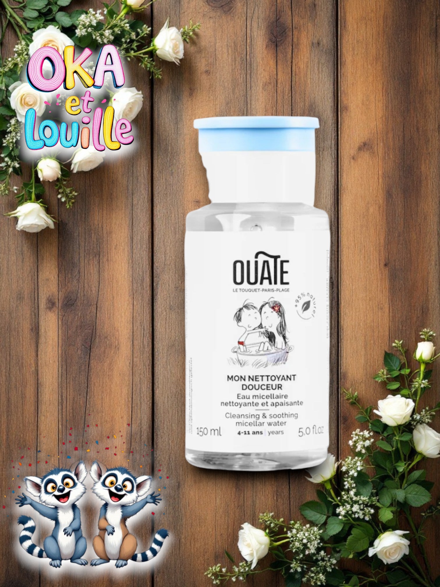 😍 Un nettoyant douceur OUATE – une eau nettoyante et apaisante avec 95% d'ingrédients d'origine naturelle. Avec son odeur toute douce et son flacon ludique et rigolo, ce nettoyant douceur va transformer le débarbouillage en un moment rigolo.