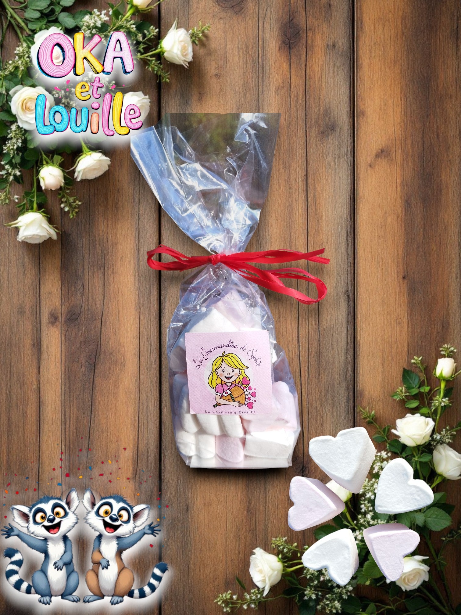🍫 Gourmandises – on reste dans le douceur avec des petits chamallows cœurs qui tout et tout moelleux. Ils fondent dans la bouche comme un petit nuage.
