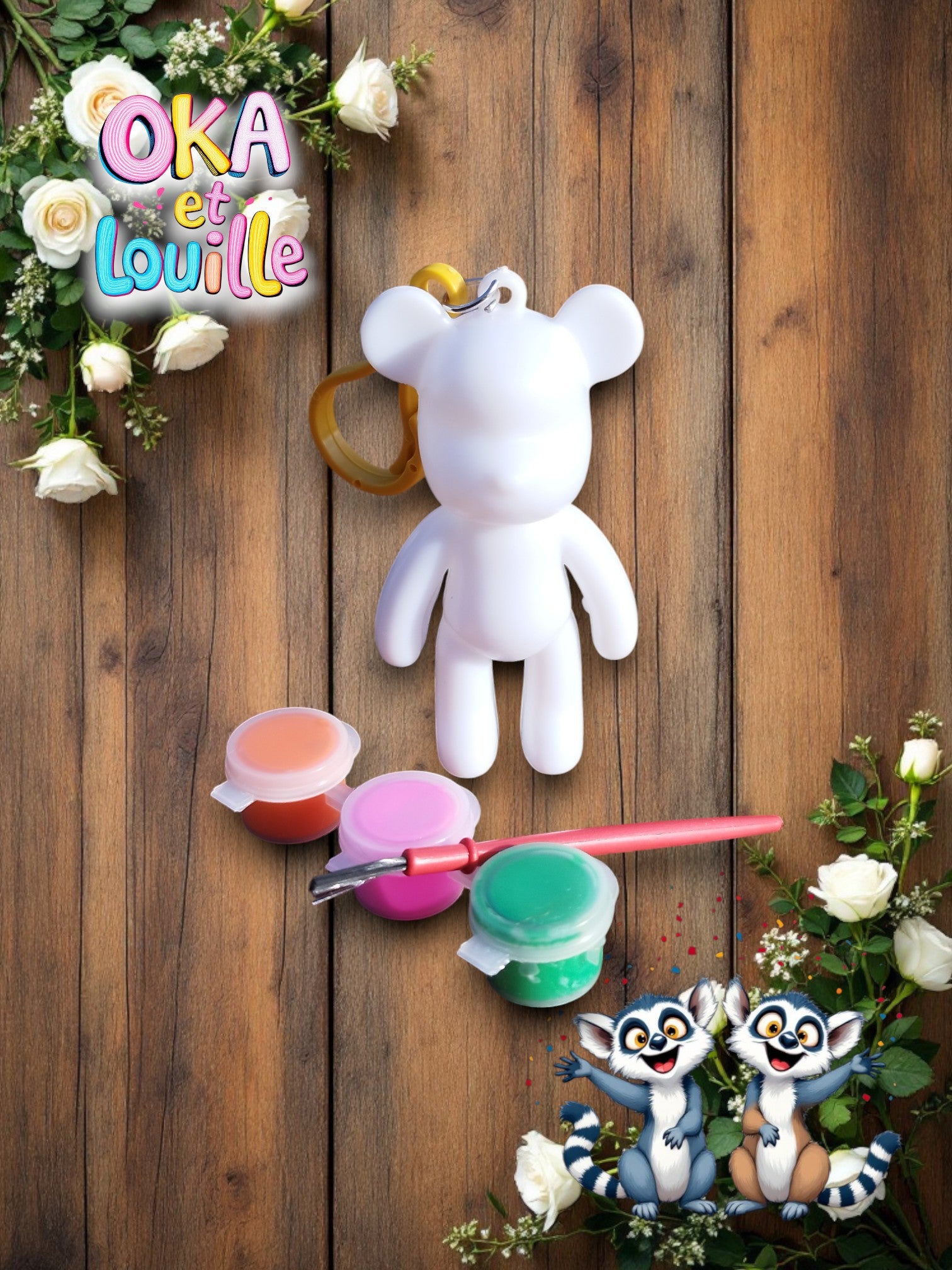 🐻kits créatifs: un petit ourson porte clé à peindre et à décorer pour mettre une touche de couleur dans la douceur de l'automne.